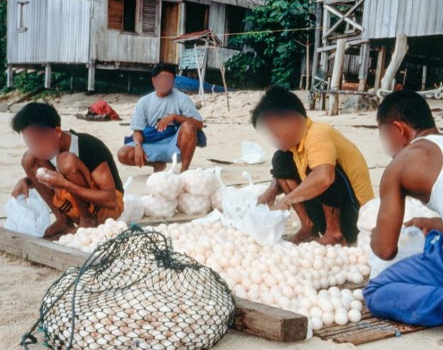 Telur penyu dan tukik sangat rentan menjadi mangsa berbagai predator seperti kepiting, anjing, kucing, babi, biawak, dan burung pemangsa. Setelah berhasil menetas dan berenang di laut, tukik menghadapi ancaman dari berbagai jenis ikan predator.